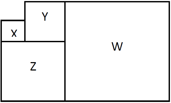 Un granjero es propietario de un terreno formado por cuatro cuadrados X, Y, Z, W como se muestra en la figura.